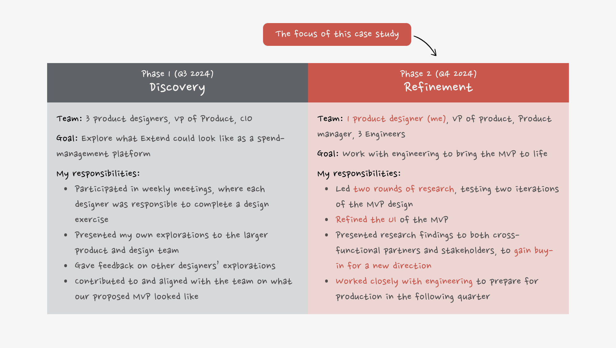 The impact was significant. We resolved long-standing design debates, created a more intuitive user experience, and set up the product for growth. This work has set the stage for Extend to retain users, attract new ones, and confidently launch its paid spend management offerings.